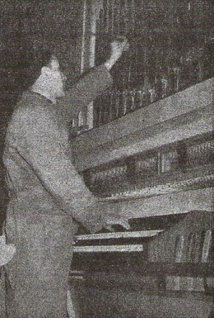 Hell schwingt der chrakteristische Klang einer Orgelpfeife durch den hohen Raum, als wir durch das Tor der evangelischen Christuskirche gegenüber dem städtischen Friedhof eintreten. Ausgerichtet "wie die Orgelpfeifen" liegen ganze Bündel von - Orgelpfeifen auf den Sitzen der Bänke, metallisch glänzend, schlank in der Form gleich Raketenleibern die einen, wie eckige, langgestreckte Holzbehälter von schwerfälligem Wuchs die anderen. Auf der Empore oben stören wir Meister Schmid bei der peniblen Arbeit des Intonierens. Dabei werden die einzelnen Pfeifen solange eingestellt, bis das Ohr des erfahrenen Fachmanns mit Lautstärke, Klangfarbe und der sauberen "Ansprache" zufrieden ist. Im Juli hat der noch recht junge Orgelbauer an dem Instrument für die Neugablonzer Kirche zu arbeiten begonnen. Es stand in seiner Kaufbeurer Werkstätte schon einmal fix und fertig, auch die zehn Register waren vorintoniert. Dann wurde das ganze Werk wieder zerliegt und wanderte in seinen Einzelteilen zu seinem endgültigen Standort in die Siedlung. Nach zehntägiger Montage geht es nun seiner endgültigen Fertigstellung entgegen. Am heutigen Tag sind bereits wieder sieben Register fertig eingebaut.